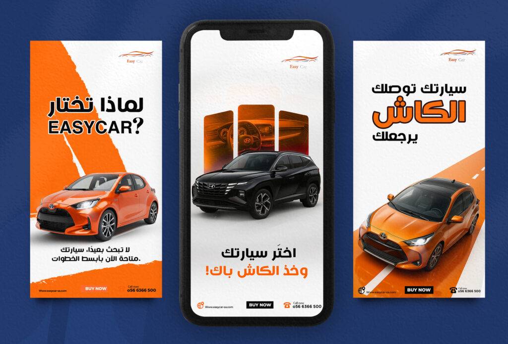 خدمات مركز الأعمال الاحترافية في تصاميم السوشيال ميديا لشركة إيزي كارت للسيارات: