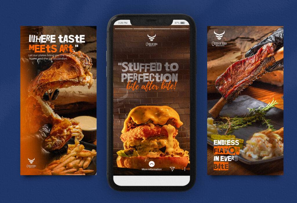 تضمنت استراتيجيتنا استخدام تصاميم تتناسب مع ألوان وهوية مطعم كريبس بشكل متكامل. حرصنا على إبراز التفاصيل الدقيقة لأطباق البرغر واللحوم المدخنة من خلال التصوير الاحترافي، مما يجعل كل صورة تجذب الأنظار وتجعل العملاء يشعرون بالجوع. استخدمنا تقنيات حديثة في التصوير والتصميم لضمان تقديم محتوى بصري مميز. مثل هذه التصاميم تساعد في التعبير عن التميز والجودة التي يقدمها مطعم كريبس.